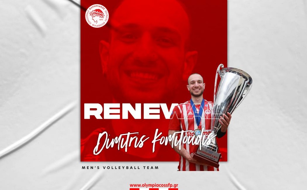 «Ο ΟΛΥΜΠΙΑΚΟΣ Σ.Φ.Π. ανακοινώνει την ανανέωση της συνεργασίας του με τον Δημήτρη Κομητούδη. Ο διεθνής πασαδόρος υπέγραψε το νέο του συμβόλαιο και παραμένει στο ρόστερ της ομάδας βόλεϊ Ανδρών του συλλόγου.