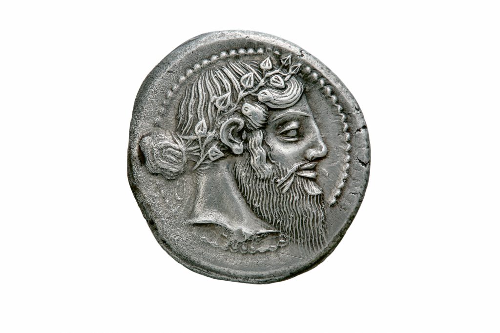 Νόμισμα της σικελικής Νάξου με τη μορφή του Διόνυσου