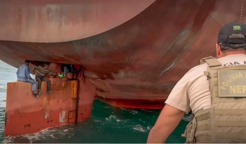Τέσσερις μετανάστες κρύφτηκαν στον χώρο πάνω από το πηδάλιο φορτηγού πλοίου και παρέμειναν επί 13 ημέρες εκεί μέχρι το σκάφος να φτάσει από τη Νιγηρία στη Βραζιλία, διασχίζοντας τον Ατλαντικό Ωκεανό.