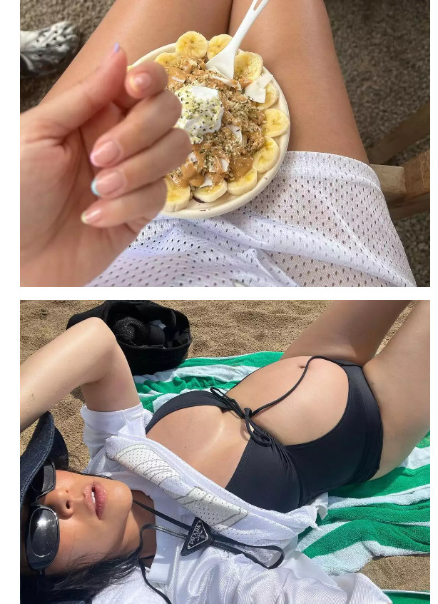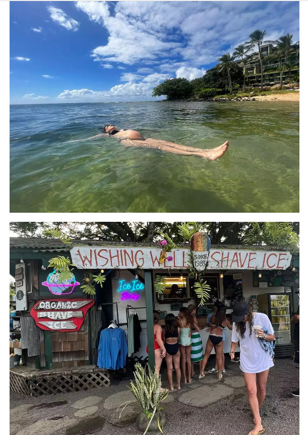 Στο πρώτο post από τη Χαβάη, τη βλέπουμε να φοράει ένα ροζ ολόσωμο φόρεμα, ενώ στο δεύτερο υπάρχει μία συλλογή φωτογραφιών, το μεγαλύτερο μέρος των οποίων είναι από εξορμήσεις της στην θάλασσα και τρεις διαφορετικές εμφανίσεις της με μαγιό.