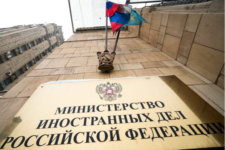 Η διπλωματία της Ρωσίας κατηγόρησε το NATO ότι έχει επιστρέψει πλήρως στα «σχήματα του ψυχρού πολέμου», κλιμακώνει τη σύγκρουση στην Ουκρανία στέλνοντας περισσότερα όπλα στο Κίεβο και διχάζει τον κόσμο με βάση ιδεολογικές διαφωνίες (φωτογραφία του Alexander Zemlianichenko/AP, επάνω, από την έδρα του ρωσικού υπουργείου Εξωτερικών στη Μόσχα).
