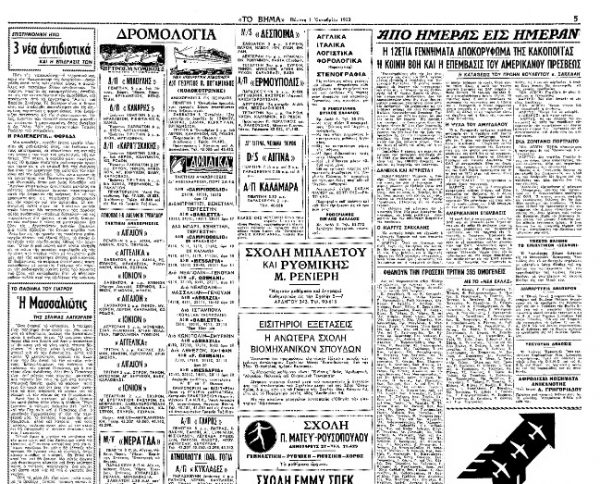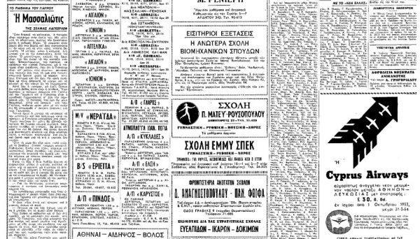 «ΤΟ ΒΗΜΑ», 1.10.1953, Ιστορικό Αρχείο «ΤΟ ΒΗΜΑ» & «ΤΑ ΝΕΑ»