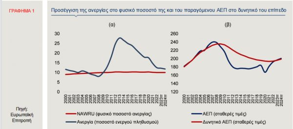 Η σταδιακή συρρίκνωση του ποσοστού της κυκλικής ανεργίας, δηλαδή της διαφοράς του ποσοστού ανεργίας από το φυσικό ποσοστό της, συνδέεται με την κάλυψη του παραγωγικού κενού της χώρας τα τελευταία έτη, το οποίο ορίζεται ως η διαφορά του πραγματικού ΑΕΠ από το δυνητικό ΑΕΠ (Γράφημα 1β).