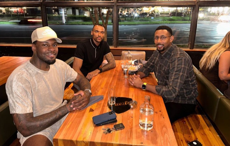 Συνάντηση… γιγάντων με «ερυθρόλευκο» τόνο. Κάπως έτσι θα μπορούσε να χαρακτηριστεί η συνάντηση που είχαν σε μαγαζί της Καλιφόρνια των ΗΠΑ οι Ταρίκ Μπλακ, Τζόελ Μπολομπόι και Τζος Τσίλντρες.