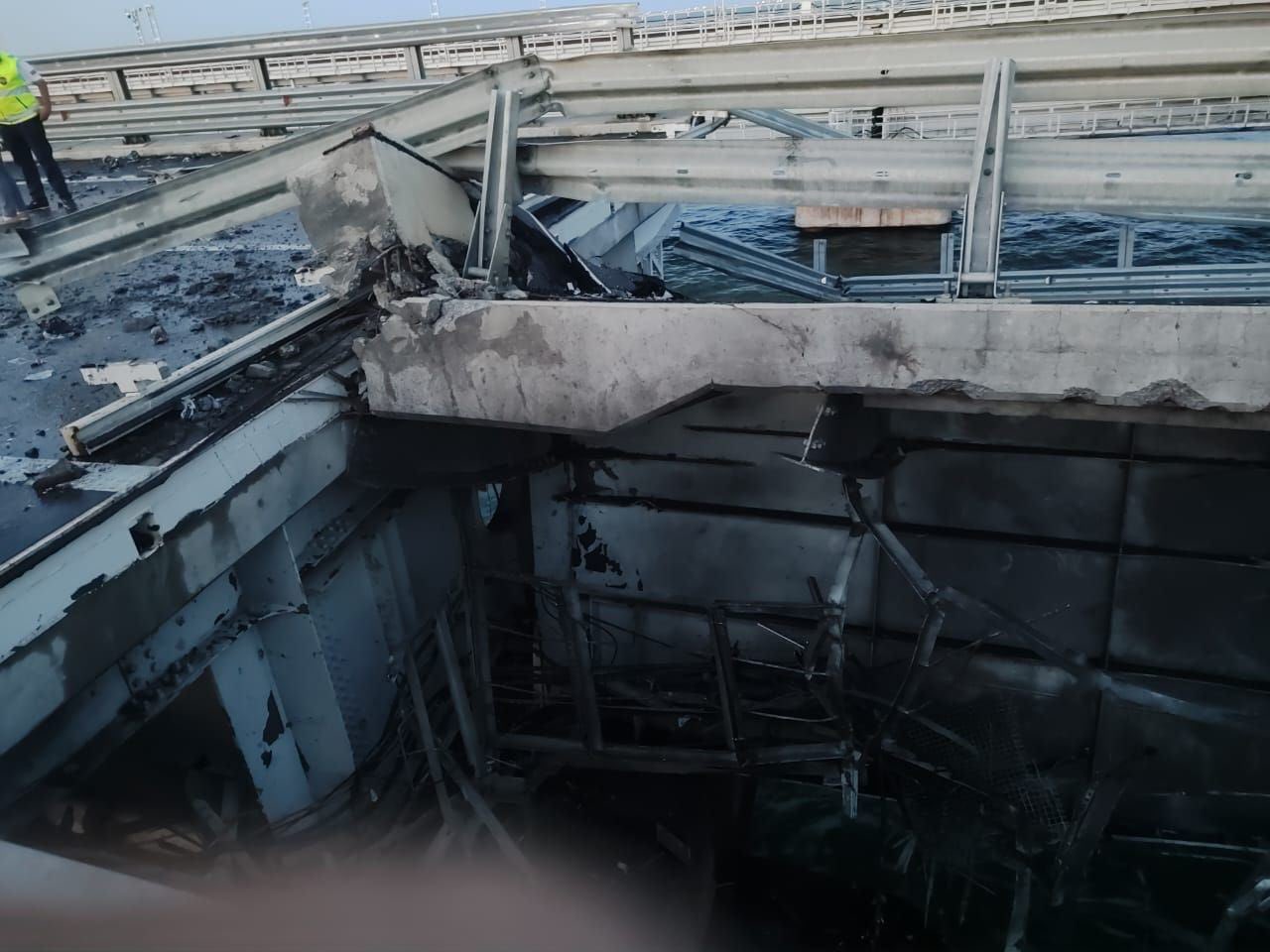 «Η σημερινή επίθεση κατά της γέφυρας της Κριμαίας είναι ειδική επιχείρηση της SBU και του Πολεμικού Ναυτικού», δήλωσε η πηγή στο AFP διευκρινίζοντας ότι «η γέφυρα δέχθηκε επίθεση με την συνδρομή ναυτικών drones».