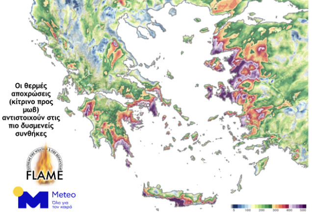 Ειδικότερα, την Τρίτη 18.07.2023 αναμένουμε την υψηλότερη επικινδυνότητα για καθοδηγούμενες από τον άνεμο δασικές πυρκαγιές σε Αττική (κυρίως ανατολικά), Κ. και Ν. Εύβοια, Κορινθία, Αργολίδα, Λακωνία, Λέσβο, Χίο, Σάμο, Ικαρία, Νάξο και Κρήτη.