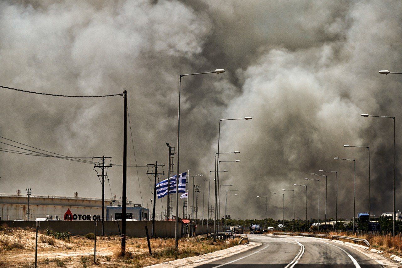 Σύμφωνα με μαρτυρίες κατοίκων και πυροσβεστών, η φωτιά έχει φτάσει στα 1.000 μέτρα από το σημείο των διυλιστηρίων.