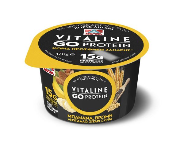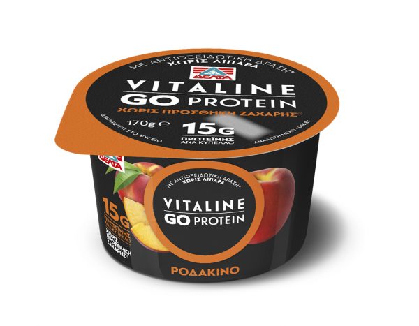 Σκέψου ένα απολαυστικό στραγγιστό γιαούρτι με 0% λιπαρά, 15G πρωτεΐνης και λιγότερες από 100 θερμίδες ανά κύπελλο. Σκέψου Vitaline Go Protein. Πρόκειται για μία ιδανική πρόταση που θα σου χαρίσει ενέργεια, απίθανη γεύση και ευκολία γιατί μπορείς να το καταναλώσεις όποια στιγμή της ημέρας θέλεις, πριν και μετά την προπόνηση, κάθε φορά που έχεις ανάγκη.