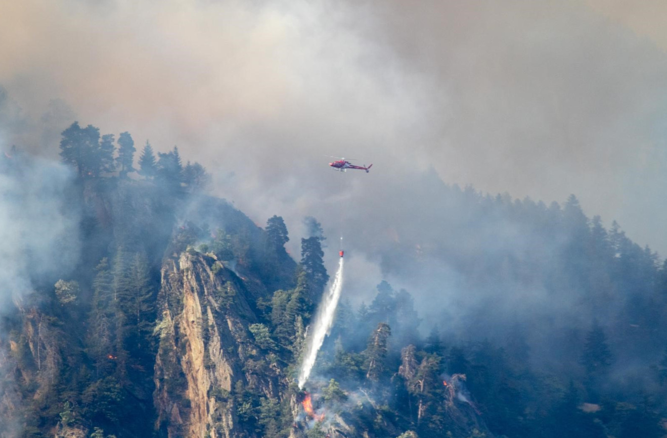 Περίπου 200 πυροσβέστες μαζί με δυνάμεις του στρατού και της Αστυνομίας εργάστηκαν με τη συνδρομή ελικοπτέρων για να σβήσουν τις φλόγες στο καντόνι του Βαλέ όλο το απόγευμα, αλλά η φωτιά συνέχισε να καίει.