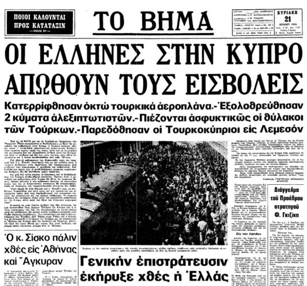 Τα διαδραματισθέντα στην Κύπρο τον Ιούλιο του 1974