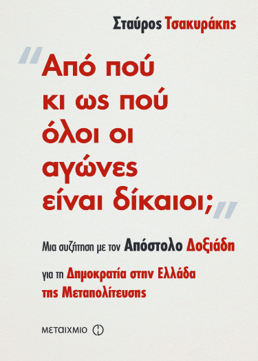 Η άκρως ενδιαφέρουσα συζήτηση των δύο ανδρών περιελήφθη στο βιβλίο των εκδόσεων Μεταίχμιο «Από πού κι ως πού όλοι οι αγώνες είναι δίκαιοι;» (κυκλοφόρησε το 2018).