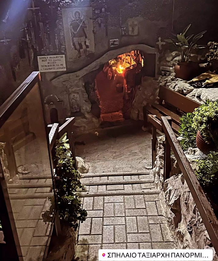 Λίγες ώρες αργότερα, συγκεκριμένα, τα ξημερώματα, ανέβασε μία φωτογραφία με το προσκύνημα που είχε κάνει στο σπήλαιο του Ταξιάρχη Πανορμίτη.