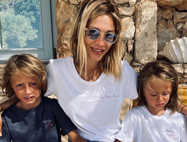Σοφία Καρβέλα: Μαζί με τον Θανάση Πανουργιά και τους γιους τους στην Αντίπαρο