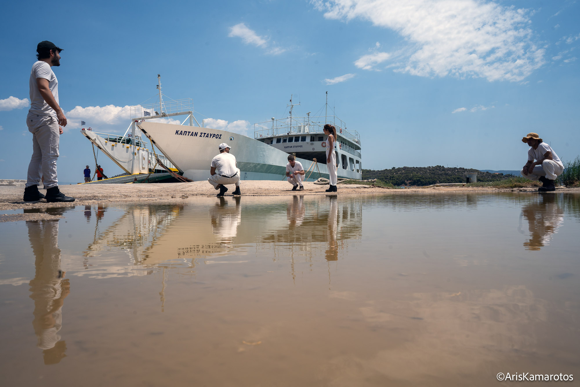 Η περφόρμανς που ξεκινά από το λιμάνι του Περάματος Μεγαρίδος με τη δύση του ήλιου, συνεχίζεται σε ένα πλοίο προς Σαλαμίνα και τέλος, όταν πέσει η νύχτα, σε μια έρημη περιοχή του νησιού που βλέπει στον τόπο όπου έλαβε χώρα η αρχαία σύγκρουση.