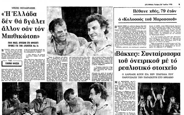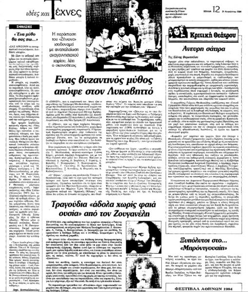 *Απόσπασμα από άρθρο του εξαίρετου ποιητή, κριτικού και βιβλιογράφου Δημήτρη Δασκαλόπουλου, που έφερε τον τίτλο «Ένα μύθο θα σας πω…» και είχε δημοσιευτεί στην εφημερίδα «Το Βήμα» στις 21 Αυγούστου 1984.