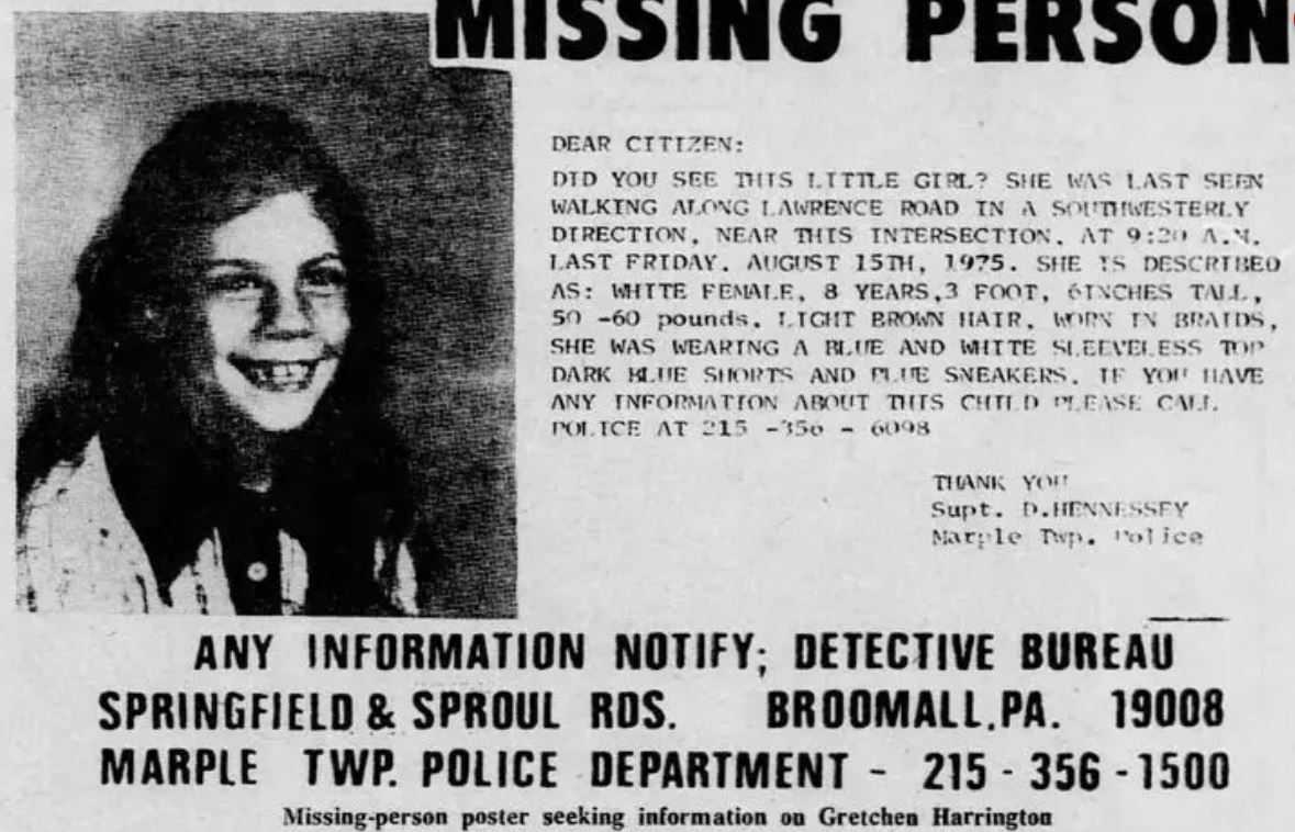 Ο 83χρονος David Zandstra, φέρεται να σταμάτησε δίπλα στην 8χρονη Gretchen Harrington με το πράσινο στέισον βάγκον του στις 15 Αυγούστου του 1975 και προσφέρθηκε να τη μεταφέρει, σύμφωνα με το γραφείο του εισαγγελέα της κομητείας του Ντέλαγουερ.