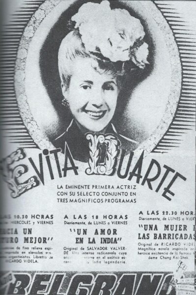 «Επανεφευρέθηκε» στο Μπουένος Άιρες ως ηθοποιός, προτού αναλάβει τον ρόλο της ζωής της: Σύζυγος του προέδρου της χώρας της και ζωτικής σημασίας προπαγανδιστικό εργαλείο για το καθεστώς του. Περιόδευσε στην Ευρώπη, εκθειάζοντας τις αρετές του Περόν, και εκείνος με τη σειρά του της έδωσε το προσωνύμιο «πνευματικός ηγέτης του έθνους».