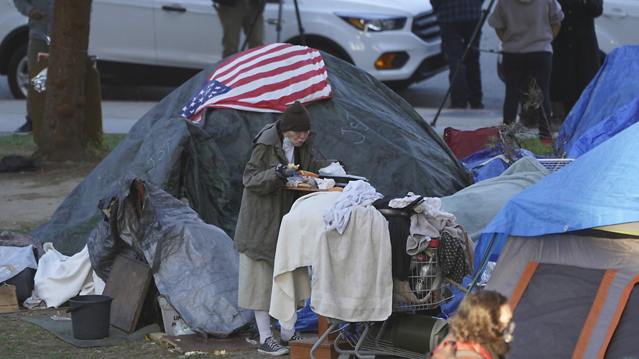 Ο πρώιμος καπιταλισμός των ΗΠΑ επικεντρώθηκε στη Νέα Αγγλία. Μετά από κάποιο χρονικό διάστημα, η επιδίωξη του κέρδους οδήγησε πολλούς καπιταλιστές να εγκαταλείψουν αυτή την περιοχή και να μεταφέρουν την παραγωγή στη Νέα Υόρκη και στις πολιτείες του μέσο-Ατλαντικού (στη φωτογραφία του AP Photo/Damian Dovarganes, επάνω, γυναίκα τρώει έξω από τη σκηνή της σε καταυλισμό αστέγων του Λος Αντζελες).