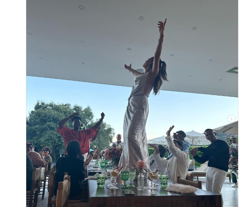 Η διάσημη σταρ ανάρτησε στο προφίλ φωτογραφίες διάφορες φωτογραφίες της με λεζάντα «Mood γενεθλίων όλο το μήνα». Η φωτογραφία στην οποία ξεχωρίζει είναι αυτή όπου φοράει μία ασημένια τουαλέτα με ανοιχτή πλάτη και χορεύει πάνω σε ένα τραπέζι. H Lopez ολοκλήρωσε το εορταστικό look με πολλά βραχιόλια και σμαραγδένια κρεμαστά σκουλαρίκια.