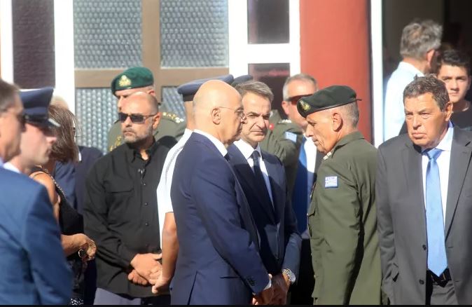 Ο πρωθυπουργός Κυριάκος Μητσοτάκης μαζί με την πολιτική και φυσική ηγεσία των Ενόπλων Δυνάμεων ήταν στην κηδεία του πιλότου που σκοτώθηκε στην Κάρυστο μετά την πτώση του Canadair