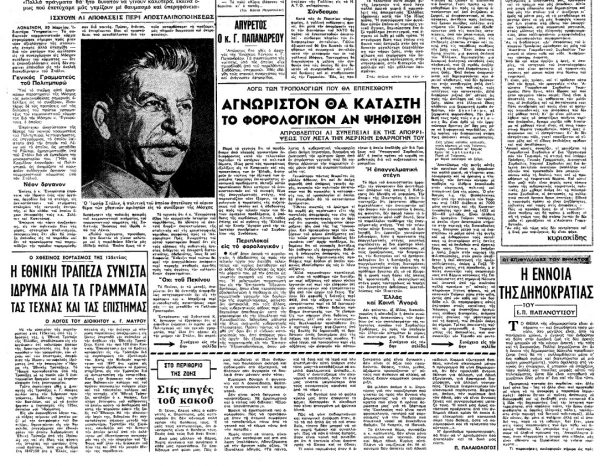 *Επιφυλλίδα του Ευάγγελου Παπανούτσου, που έφερε τον τίτλο «Η έννοια της δημοκρατίας» και είχε δημοσιευτεί στην εφημερίδα «Το Βήμα» στις 31 Μαρτίου 1966.
