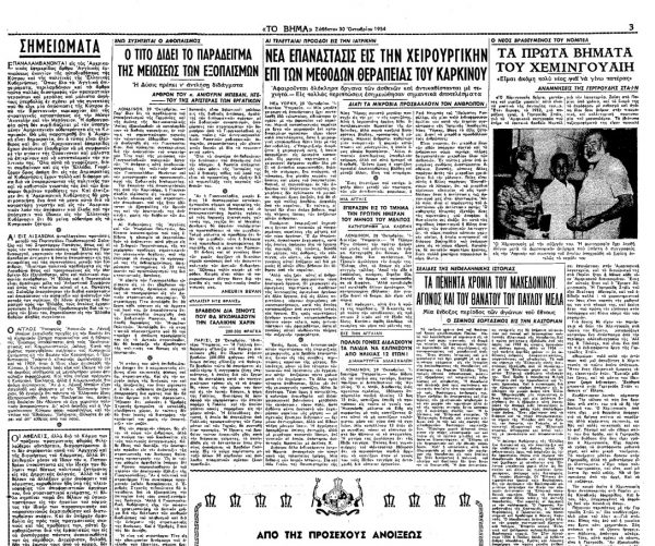 Πιο συγκεκριμένα, στο φύλλο που είχε κυκλοφορήσει στις 30 Οκτωβρίου 1954, σε άρθρο που έφερε τον τίτλο «Τα πρώτα βήματα του Χέμινγουαιη – Αναμνήσεις της Γερτρούδης Στάιν», διαβάζουμε τα εξής:
