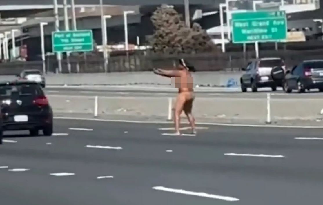 Ξαναμπήκε στο αυτοκίνητό της και συνέχισε την οδήγηση προς το Όκλαντ, αλλά σταμάτησε ξανά πιο κάτω και βγήκε γυμνή από το αυτοκίνητο με ένα όπλο, όπως αναφέρουν αμερικανικά ΜΜΕ. Στη συνέχεια άρχισε να πυροβολεί «τυφλά» προς τα αυτοκίνητα που ήταν πίσω της.