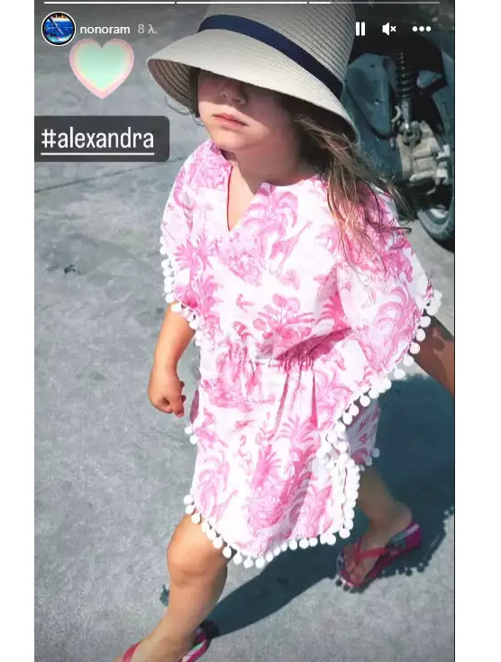 Πολλές μέρες η παρουσιάστρια συνδυάζει αναρτήσεις και φωτογραφίες από τις στιγμές με την οικογένεια της. Έτσι έκανε και την Πέμπτη 27/7 όπου ανέβασε μία φωτογραφία της μικρής Αλεξάνδρας, η οποία είναι 5 χρόνων, ντυμένη με φόρεμα-καφτάνι, καπέλο και σαγιονάρες.