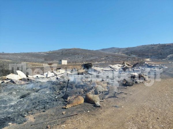 Όπως φαίνεται σε καμμένες καλλιέργιες και κτηνοτροφικές μονάδες είναι μεταξύ των ζημιών που άφησε πίσω της η πύρινη λαίλαπα.