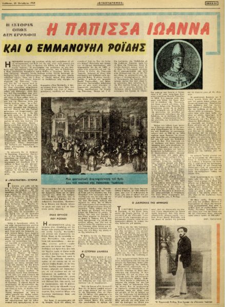 *Απόσπασμα από ένα έξοχο κείμενο για τον Εμμανουήλ Ροΐδη και την περίφημη «Πάπισσα Ιωάννα», που είχε δημοσιευτεί στο περιοδικό «Ο Ταχυδρόμος» στις 25 Οκτωβρίου 1958.