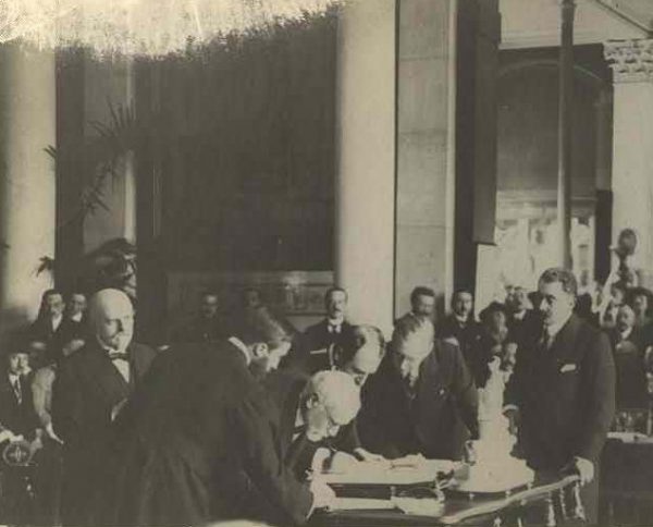 Δεκατέσσερα κράτη, μεγάλα και μικρά, υπέγραψαν την Συνθήκην των Σεβρών το απόγευμα, ώρα 4, της ιστορικής εκείνης ημέρας της 28ης Ιουλίου 1920, κατά το παλαιόν ημερολόγιον. Η υπογραφή επραγματοποιήθη εις το Δημαρχείον της πόλης Σεβρ μετά πάσης επισημότητος, παρόντων των αρχηγών των συμμάχων κυβερνήσεων. Την τουρκικήν Κυβέρνησιν αντιπροσώπευαν ο στρατηγός Χαμδή πασάς και ο Ριζά Τεφήκ βέης. Τα κράτη που εκύρωσαν διά της υπογραφής των την Συνθήκην από της πλευράς της νικητρίας παρατάξεως ήσαν: Μεγάλη Βρεττανία, Γαλλία, Ιταλία, Ιαπωνία, Ελλάς, Ρουμανία, Σερβο-Κροατο-Σλοβενία, Πολωνία, Τσεχοσλοβακία, Βέλγιον, Πορτογαλία, Εδζάζη (σ.σ. πρόκειται για τη Χετζάζη ή Χετζάζ, τμήμα της νυν Σαουδικής Αραβίας) και η ιδρυθείσα τότε Αρμενία.