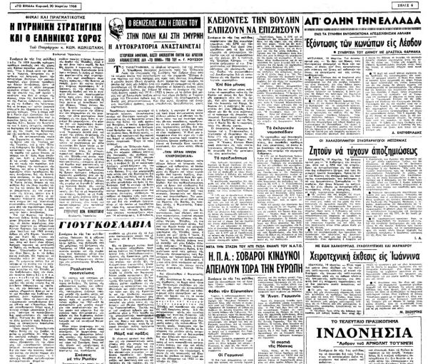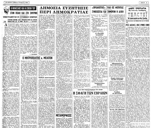 Τα συγκεκριμένα αποσπάσματα προέρχονται από τα φύλλα του «Βήματος» που είχαν κυκλοφορήσει το Σάββατο 19 και την Κυριακή 20 Μαρτίου 1966 (οι επιφυλλίδες των δύο αυτών ημερών αφορούσαν την υπογραφή της Συνθήκης των Σεβρών και την κεφαλαιώδη σημασία της για τον ελληνισμό και το νεότερο ελληνικό κράτος).