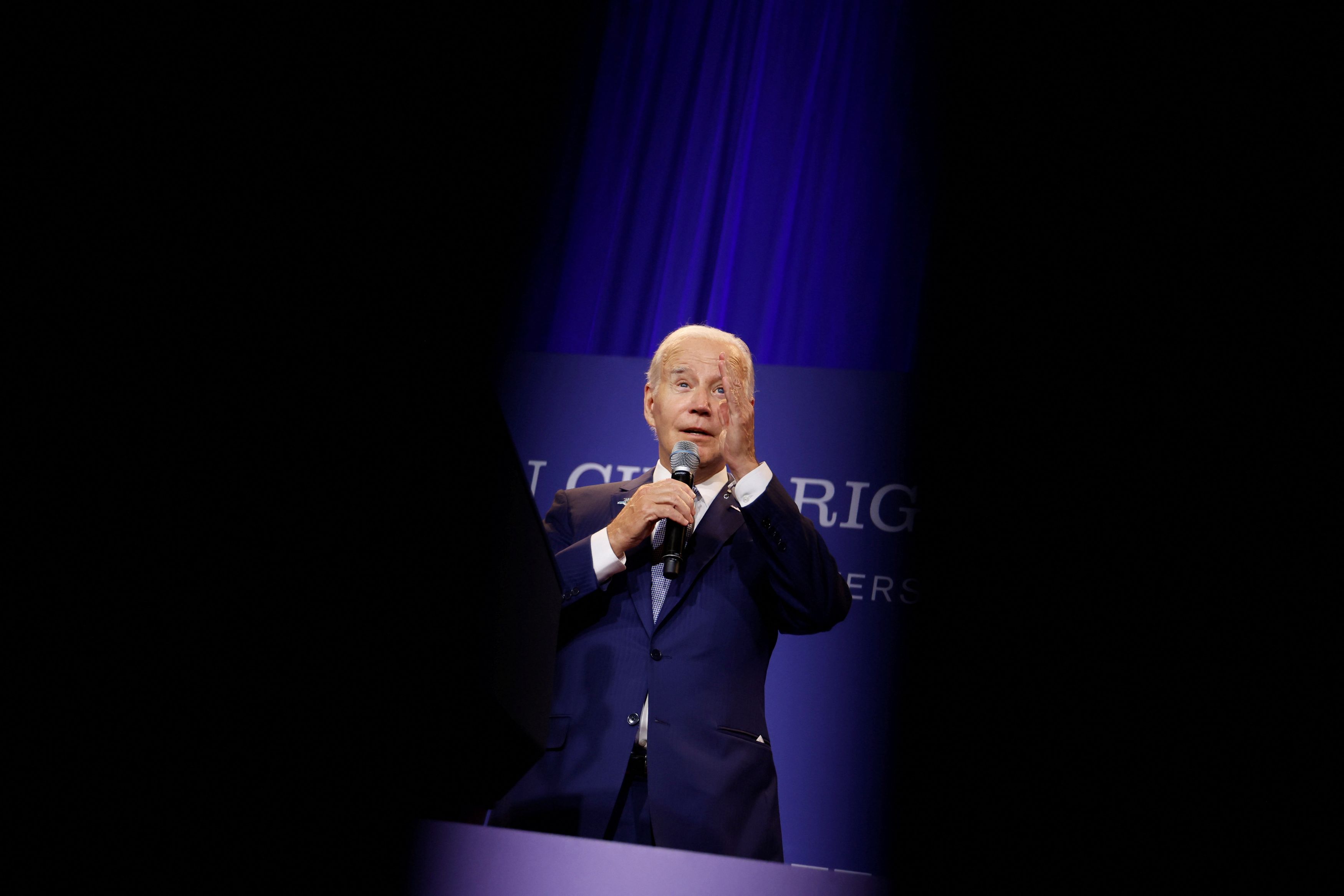 Αρχικά, αν και προσπάθησε να πλησιάσει με ταχύ βηματισμό το βήμα του Συμποσίου Πολιτικών Δικαιωμάτων Τρούμαν, την Πέμπτη 27 Ιουλίου, ο Τζο Μπάιντεν ξαφνικά «μείωσε» ταχύτητα.