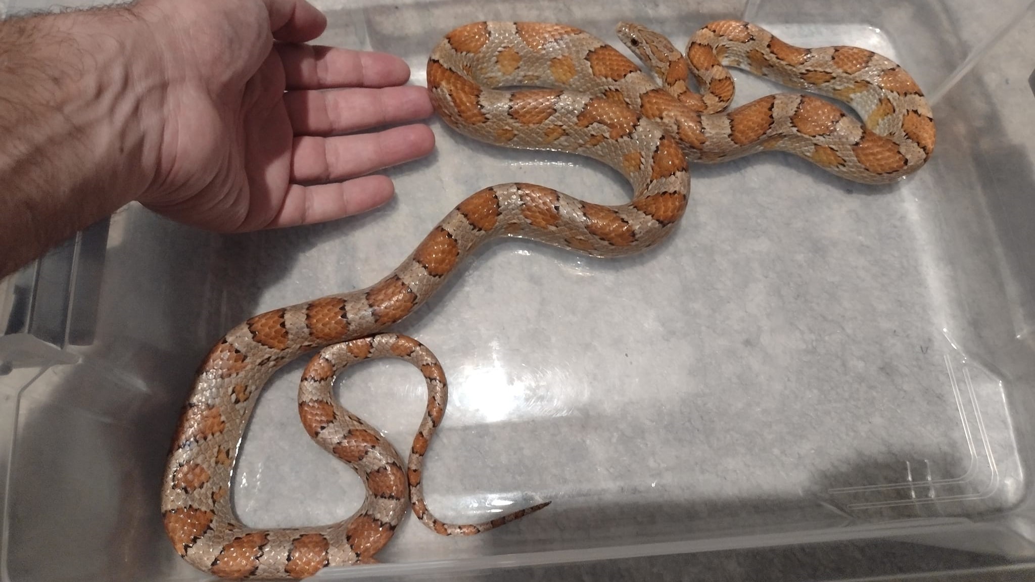 «Κάθε χρόνο, άνοιξη και καλοκαίρι είμαστε σε επικοινωνία και συνεργασία με την Πυροσβεστική Υπηρεσία σχεδόν καθημερινά για αναγνώριση και απομάκρυνση φιδιών από κατοικημένες περιοχές στον νομό Θεσσαλονίκης (και όχι μόνο). Η σημερινή κλήση αφορούσε ένα αμερικανικό φίδι πετ που πιθανότατα ξέφυγε από γυάλα και βρέθηκε να κυκλοφορεί στον πρώτο όροφο σπιτιού, στη δυτική Θεσσαλονίκη. Αφού κλήθηκε το 199, το προσωπικό της Π.Υ. περισυνέλεξε και απομάκρυνε το τυχερό στην ατυχία του φίδι. Πρόκειται για Corn Snake, είδος πολύ συνηθισμένο στο εμπόριο κατοικίδιων ζώων. Αναζητείται ο κηδεμόνας του, ο οποίος προφανώς ζει πολύ κοντά στο σημείο που βρέθηκε το ζώο».