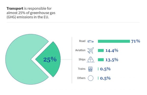 Να σημειωθεί ότι σύμφωνα με σχετική έκθεση, οι μεταφορές είναι υπεύθυνες για το 25% των εκπομπών ρύπων στην ευρωπαϊκή επικράτεια ενώ αξίζει να σημειωθεί ότι το 71% οφείλεται σε οδικές μεταφορές.