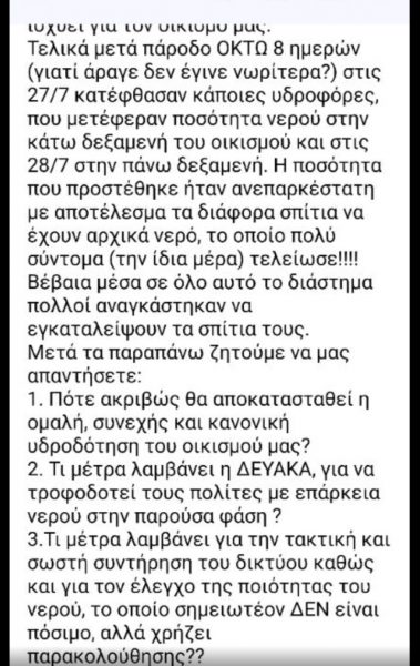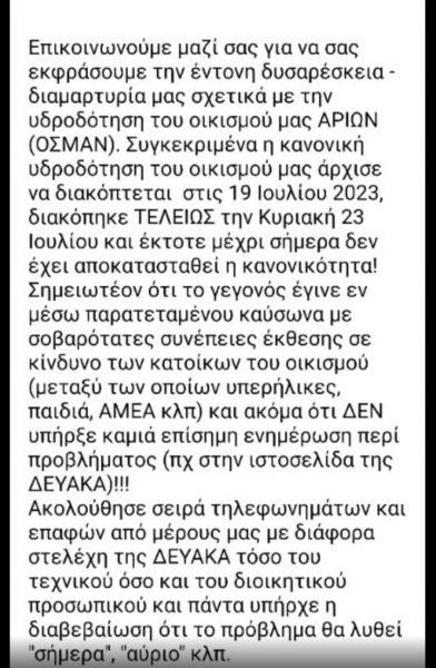Στις 24 Ιουλίου η ΔΕΥΑΚ ανέφερε για μια βλάβη: