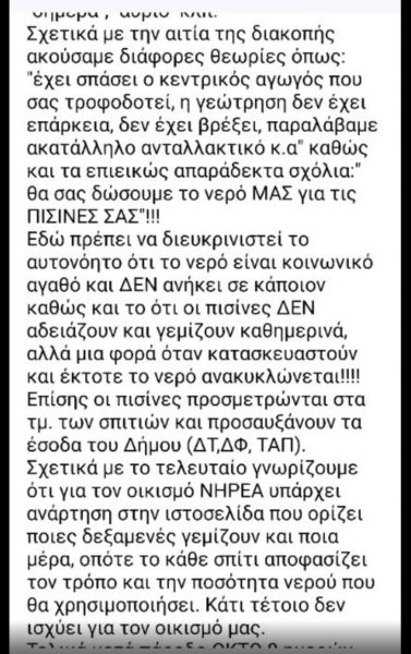 Έμειναν χωρίς νερό για μέρες, όπως ισχυρίζονται και πολλοί αναγκάστηκαν να εγκαταλείψουν τις εστίες τους. Αποκλειστικά στο in έγγραφα των δημοτών.