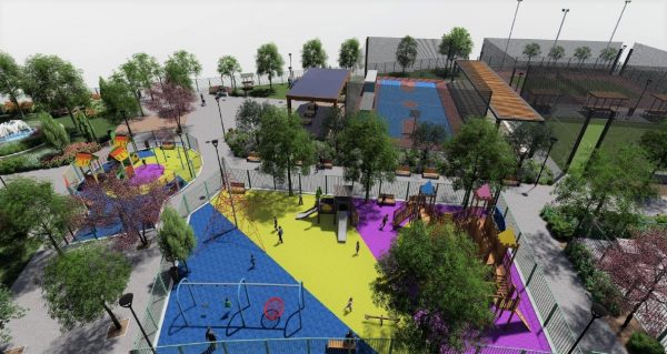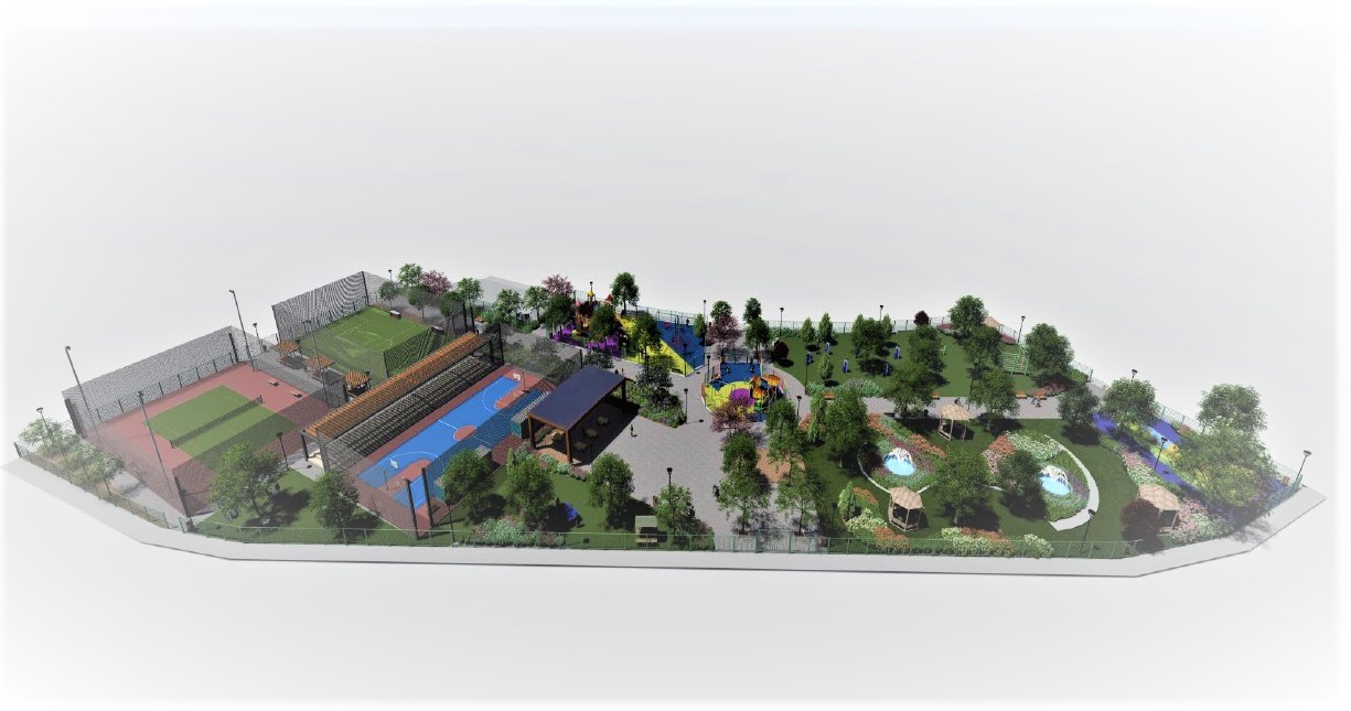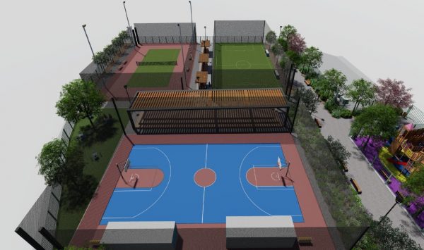 Υπαίθριους χώρους αθλητισμού, με 3 νέα γήπεδα (ποδοσφαίρου, μπάσκετ, τένις), υπαίθριο γυμναστήριο και εξοπλισμό για αθλητικές δραστηριότητες (επιτραπέζια αντισφαίριση, σκάκι εξωτερικού χώρου, πίστα ποδηλασίας).