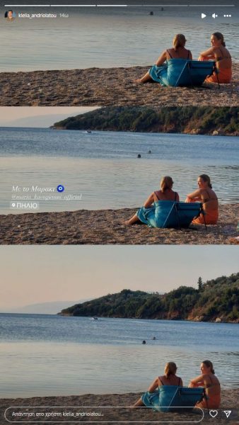 Στη φωτογραφία με την καλή της φίλη, Μαρία Καοβογιάννη, ποζάρουν με θέα τη θάλασσα την ώρα που ο ήλιος δύει και το σκηνικό είναι ονειρεμένο.