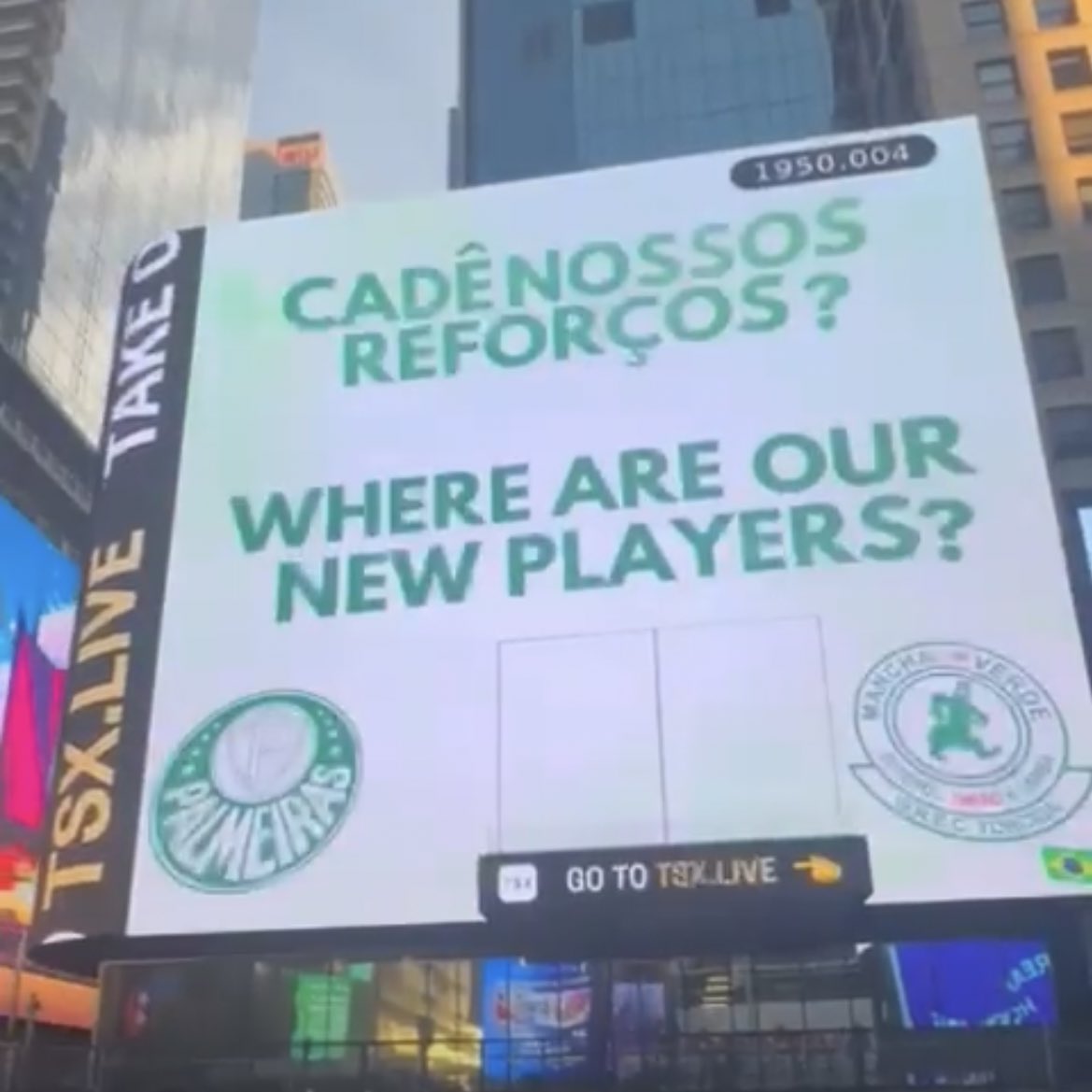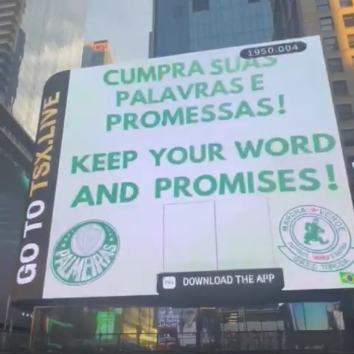 Πλήρωσαν για να βάλουν το μήνυμά τους σε ένα απ’ τα γνωστά matrix της Times Square στη Νέα Υόρκη! Γραμμένο στα Πορτογαλικά και στα Αγγλικά, με το έμβλημα της Παλμέιρας, έγραψαν χαρακτηριστικά: «Που είναι οι νέοι μας παίκτες; Κράτα το λόγο και τις υποσχέσεις σου»!