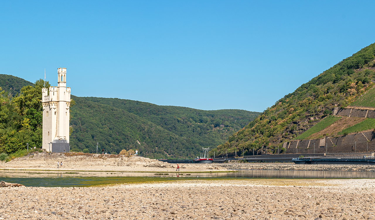 Το επίπεδο διέλευσης φορτηγίδων στο Kaub, γνωστό στον κλάδο στενό σημείο του ποταμού από το οποίο τα σκάφη δυσκολεύονται περισσότερο στο να περάσουν στο ταξίδι τους στην ενδοχώρα, βρίσκεται ήδη στο χαμηλότερο σημείο για αυτή την εποχή του χρόνου εδώ και τουλάχιστον 30 χρόνια. Οι φορτηγίδες που μεταφέρουν καύσιμα από την περιοχή του Ρότερνταμ πέρα από το Kaub μπορούν επί του παρόντος να μεταφέρουν μόνο 1.200 τόνους καυσίμων, σύμφωνα με την εταιρεία Riverlake Barging που επικαλείται το περιοδικό Fortune. Η ποσότητα αυτή έχει μειωθεί από περίπου 2.000 τόνους που ήταν πριν από μικρό χρονικό διάστημα.