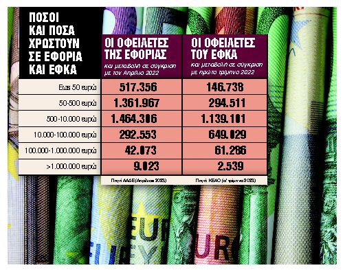 Βέβαια υπάρχουν και οι οφειλέτες που έχουν φεσώσει με μεγάλα ποσά την Εφορία και τον ΕΦΚΑ, τα οποία είναι αδύνατον να εξοφληθούν σήμερα σε 24 ή 48 δόσεις που προβλέπει η πάγια ρύθμιση, ενώ όσοι δεν διαθέτουν περιουσιακά στοιχεία θεωρούν ότι δεν έχουν τίποτα να χάσουν με την επιβολή των αναγκαστικών μέτρων είσπραξης οφειλών (κατασχέσεις, πλειστηριασμοί) ή τις ποινικές διώξεις και φυσικά δεν τους συγκινεί ούτε η δημοσιοποίηση του ονόματός τους που περιλαμβάνεται στη λίστα των μεγαλοοφειλετών. Μάλιστα, την Παρασκευή 4 Αυγούστου, η ΑΑΔΕ αναμένεται να βγάλει στα «μανταλάκια» τα ονόματα όσων χρωστούν σε Εφορία ή και ΕΦΚΑ πάνω από 150.000 ευρώ έκαστος και για χρονικό διάστημα μεγαλύτερο του ενός έτους.