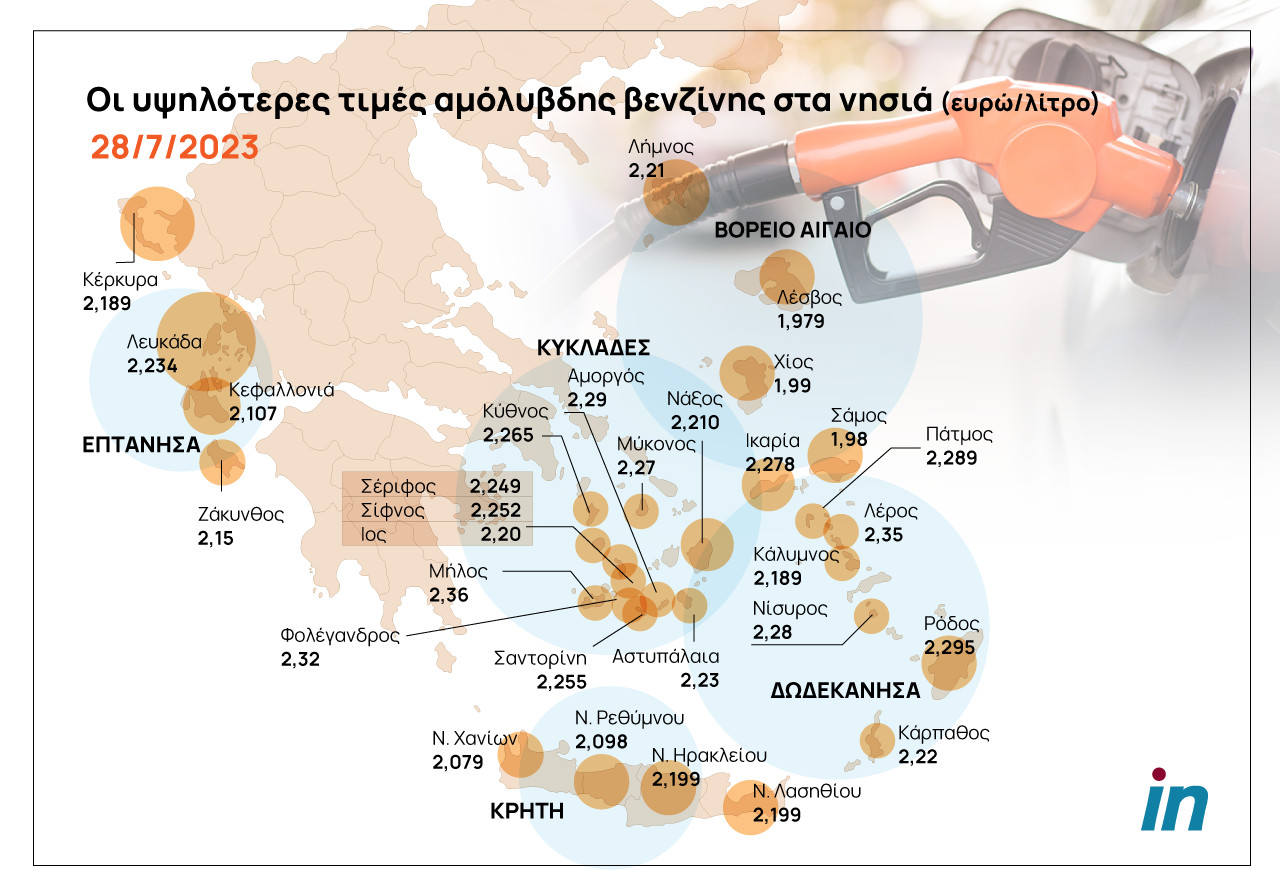 Και αν στην Αθήνα καλείσαι να πληρώσεις τιμές Φινλανδίας (με ελληνικό όμως μισθό), όσο απομακρύνεσαι από την πρωτεύουσα και κυρίως αν μεσολαβήσει και θάλασσα, κοινώς επιλέξεις νησί για τις διακοπές σου, οι τιμές εκτοξεύονται σε επίπεδα που η επίσκεψη στο βενζινάδικο μπορεί όντως να τινάξει στον αέρα τον οικογενειακό προϋπολογισμό.