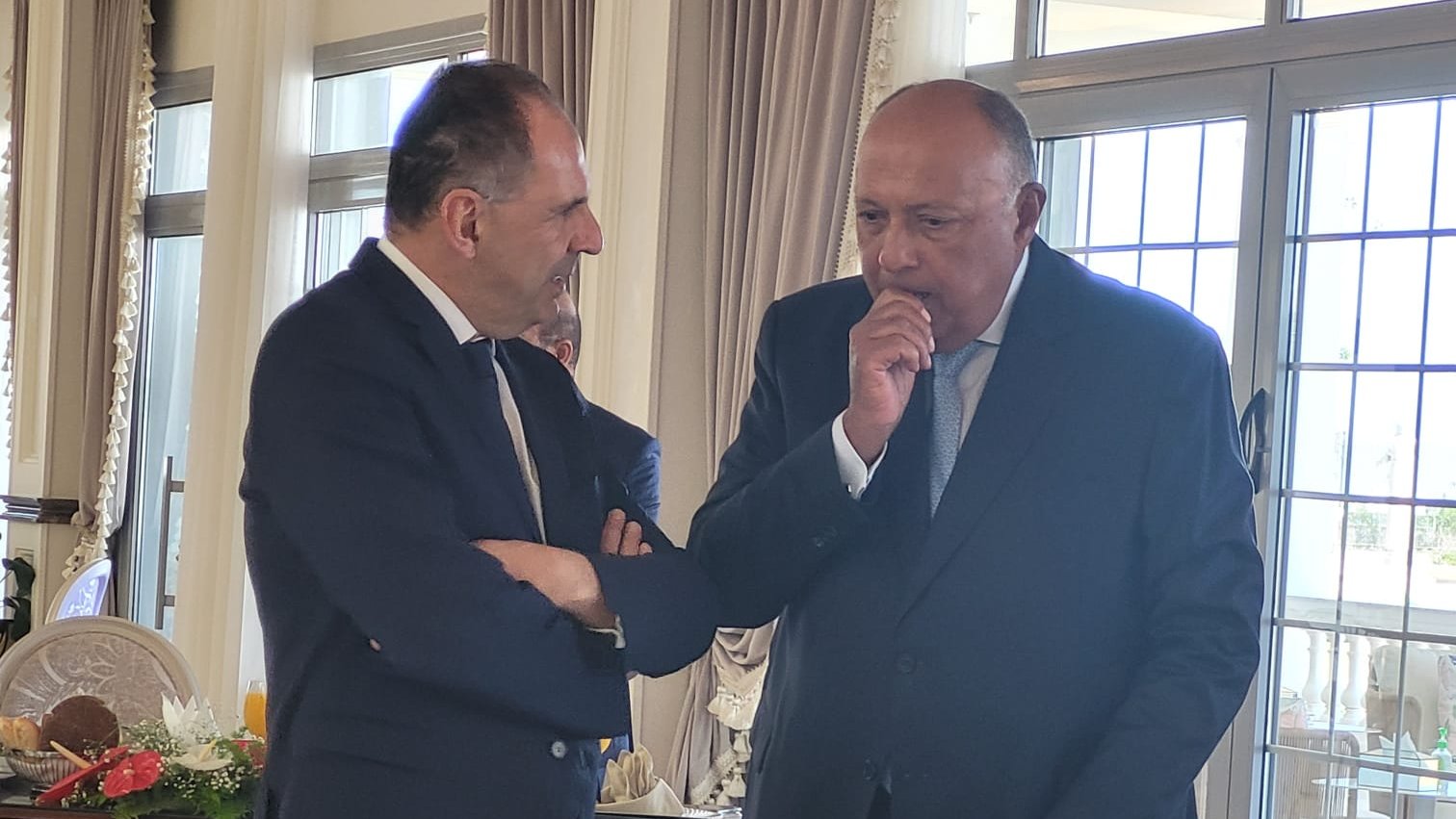 In the context of @PrimeministerGR’s visit to Egypt, FM George Gerapetritis held today his 1st meeting w/ #Egypt FM Sameh Shoukry, following several phone conversations (1/2) pic.twitter.com/Vwx92qpXo3