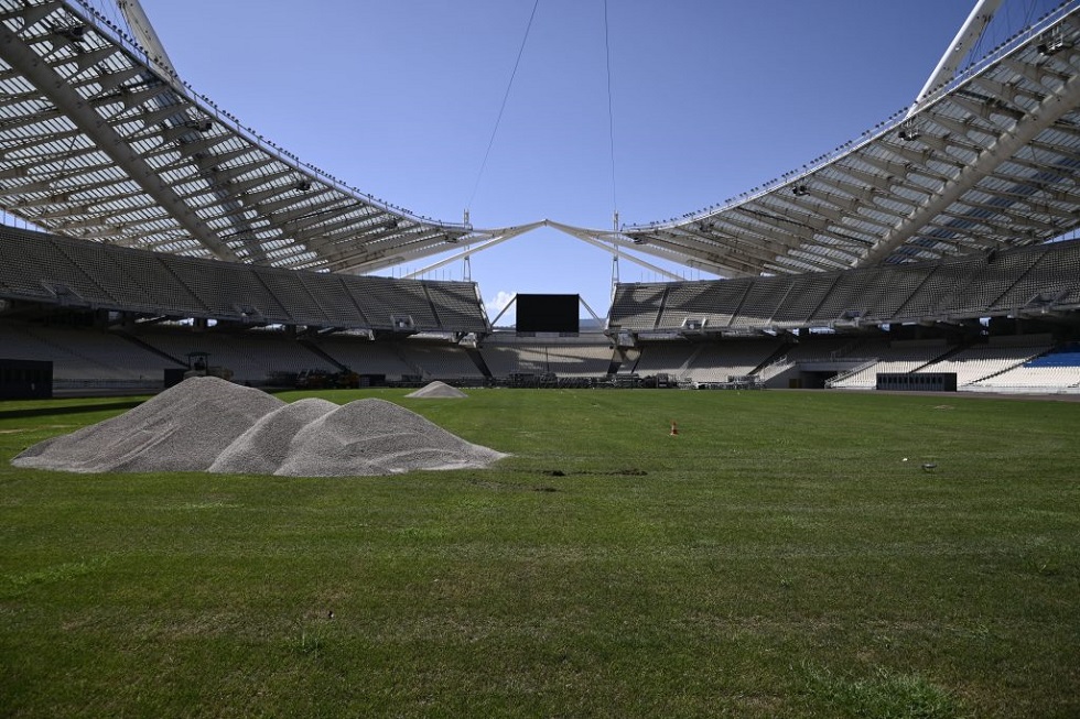 Μετά τη χρήση του γηπέδου ως συναυλιακού χώρου αλλά και εξαιτίας της αλλαγής υποδομής στους Ολυμπιακούς Αγώνες του 2004, ο αγωνιστικός χώρος του Ολυμπιακού Σταδίου υπέστη σοβαρή ζημιά.