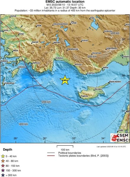 Σεισμός 4,8 Ρίχτερ ανοιχτά της Τουρκίας, ανάμεσα στην Κύπρο και το Καστελόριζο