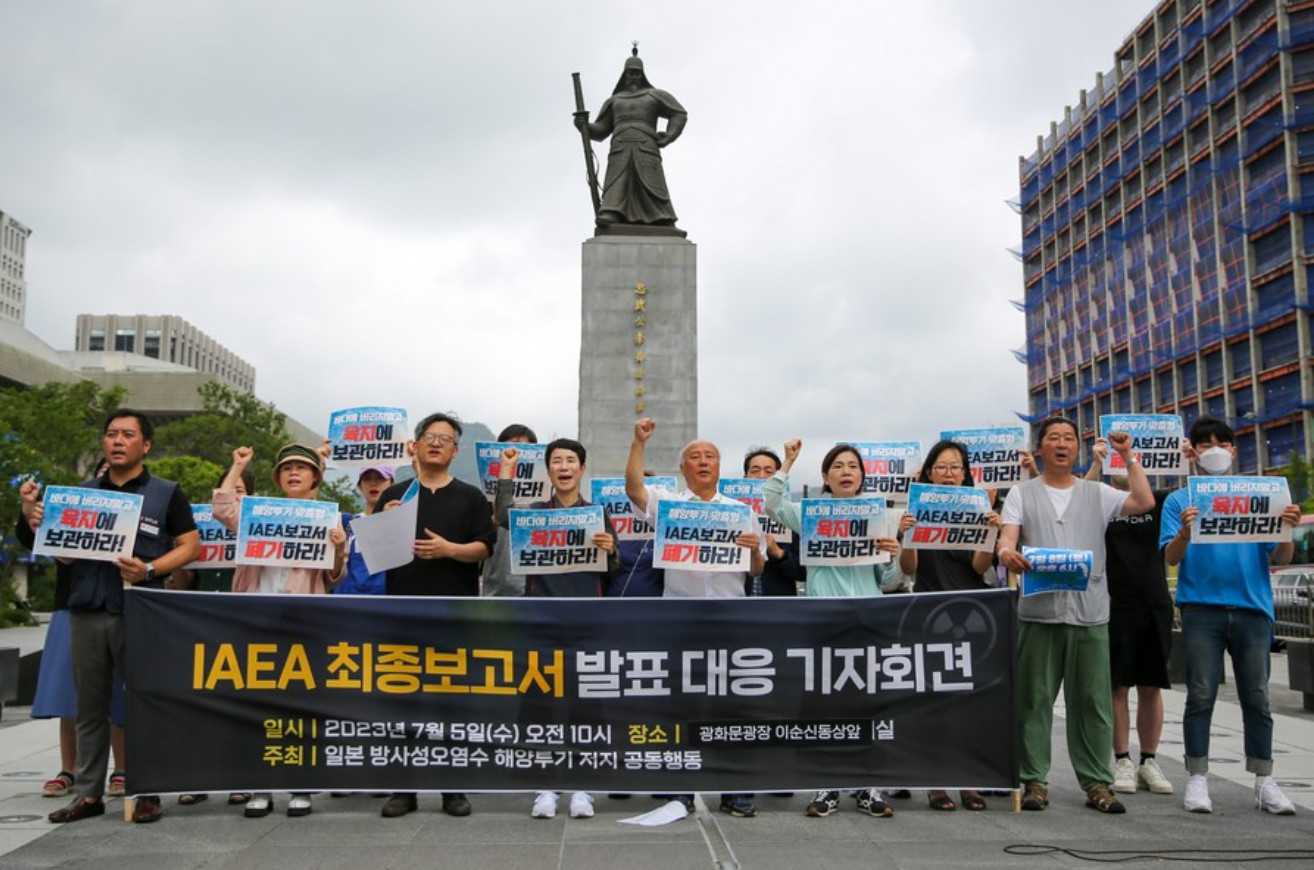 A group of South Korean civic activists, politicians, fishermen and ordinary people gathered in central Seoul on Saturday to raise their voice against the International Atomic Energy Agency’s (IAEA) final report on Japan’s planned discharge of nuclear wastewater into the Pacific. pic.twitter.com/pnbvsnf5U3