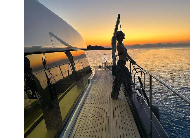 Στη νέα της ανάρτηση, η χρυσή κληρονόμος, ανήρτησε στιγμιότυπα από την ώρα που απόλαυσε το ηλιοβασίλεμα πάνω από το σκάφος. Η φωτογραφία που ξεχώρισε ήταν εκείνη με το τρυφερό φιλί στον σύζυγό της, Κάρτερ Ριμ με τον οποίο παντρεύτηκαν τον Νοέμβριο του 2021. Το ζευγάρι απέκτησε στις αρχές του χρόνου παιδί μέσω παρένθετης μητρότητας.