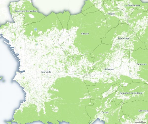 Οι περιοχές με πράσινο στη Μασσαλία.
