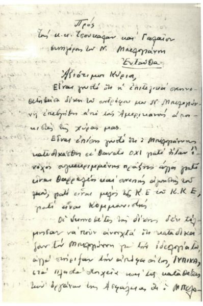 Η ανακοίνωσι του κόμματος περί αποκηρύξεώς μου είχε σκοπό να προφυλάξη το κόμμα από έναν υποτιθέμενο εχθρό και οφείλεται σε σφαλερές ενδείξεις και υποβολιμαίες πληροφορίες.